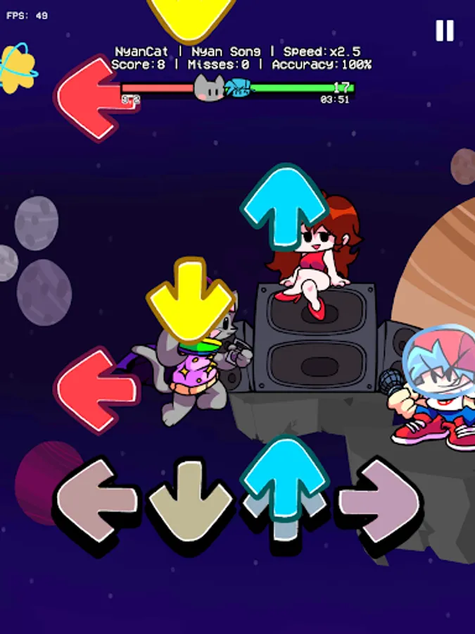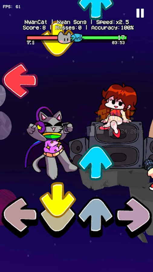 Join in our funkin Friday night music party to meet several funkin characters like BF, GF, Birdie, Nyan cat, Tails, and so on.