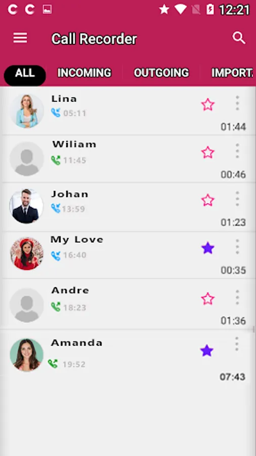 Phone call recording app allows you to manage recording files in a smart way with features like share, play, delete, rename call recordings, multiple audio formats, increase favorites, voice recorder, etc. Never worry about losing important call recordings anymore.