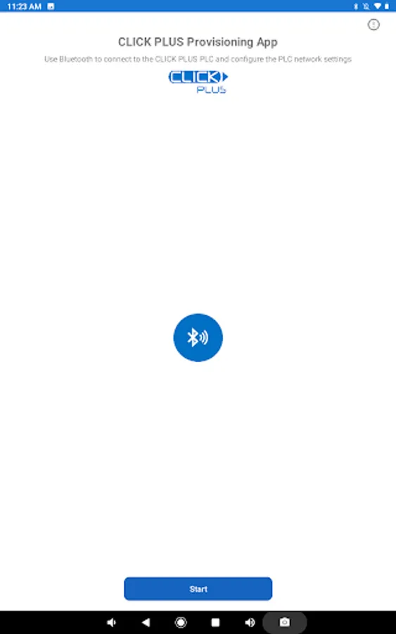 The CLICK PLUS Provisioning App is used to configure the AutomationDirect CLICK PLUS C2-02CPU and C2-03CPU controllers with Built-in Wi-Fi and Bluetooth. A Factory new CLICK PLUS has Bluetooth enabled by default which is used to allow the App to connect and quickly configure the needed Wi-Fi settings. Provisioning is usually done once and involves the process of preparing and equipping the CLICK PLUS PLC network settings to allow a wireless connection from the Click Programming Software until a project with permanent settings can be loaded.