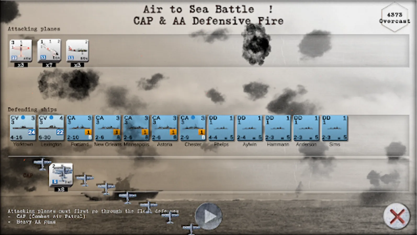 • Air strikes against naval and land targets, surface battles