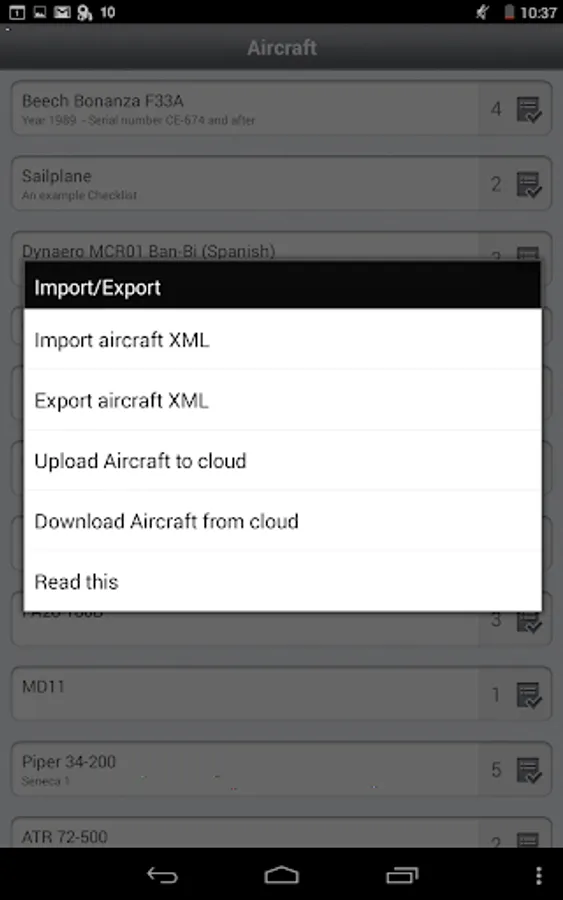 You can transfer your checklists between your computer and your phone or tablet simply copying the database file (“AvChecklist.db”) or exporting and importing to an XML file.