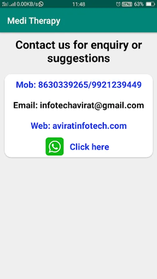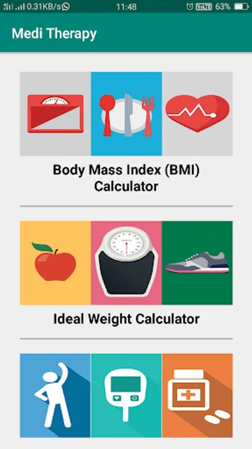 Medi Therapy helps users to remember their timing of medicines. Gives reminder when time to have medicine. This also includes health calculators like BMI calculator, Ideal weight calculator, Exercise Calorie calculator, etc.