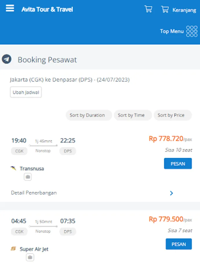 Avita Tour & Travel is a portal that provides online flight and train ticket bookings with professional staff. We provide various information about flights, interesting tourist attractions throughout Indonesia, travel tips and various promo tickets / cheap tickets for domestic flights at the lowest prices for Lion Air, Batik Air, Sriwijaya Air, Citilink, Air Asia, Sky Aviation, Trans Nusa, Merpati and Garuda Indonesia flights. For international or group ticket reservations, please contact us through our call center.
