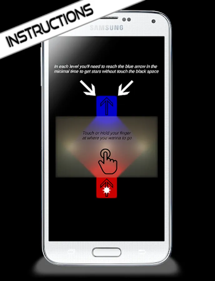 To navigate in The Hardest Maze Ever you need to touch or hold your finger on the maze and try to get to the blue arrow from the red arrow in the minimal time.
