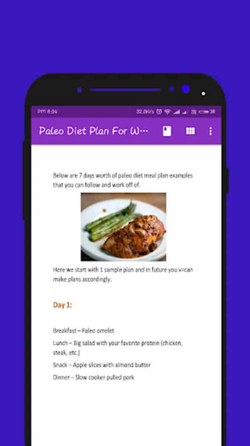 Paleo Diet Plan For Weight Loss is a comprehensive app to look at what the paleo diet is, how it works and how to implement the paleo diet in your daily life.