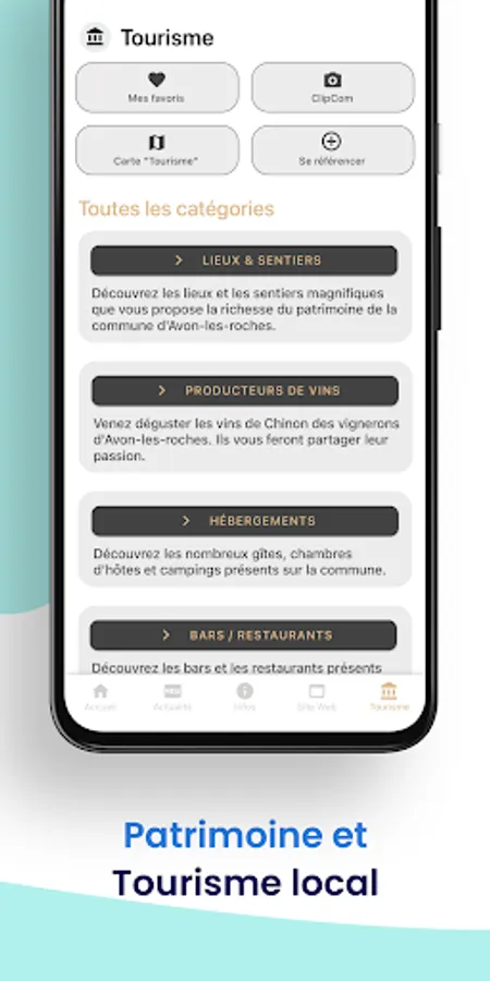 The Avon-les-Roches application allows all citizens and tourists to find information about the municipality.