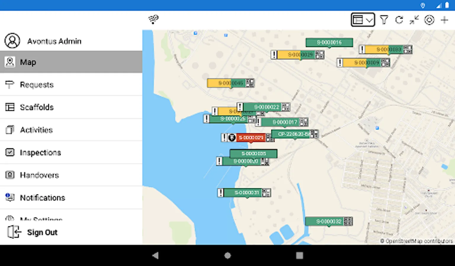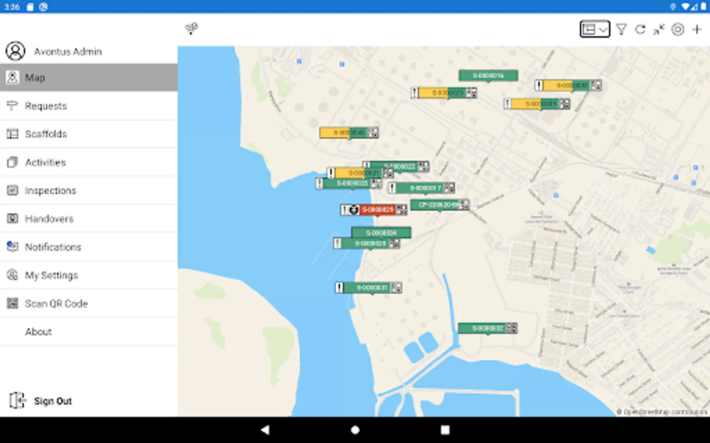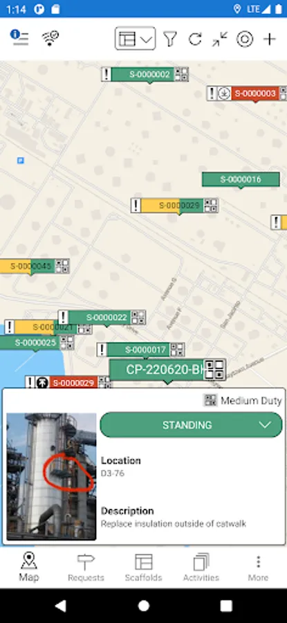 • All in a map view that helps you effortlessly track every scaffold--from request to dismantle--in real time. Find out exactly where scaffolds are, who’s responsible for tasks, and what all updated statuses are, at all times.