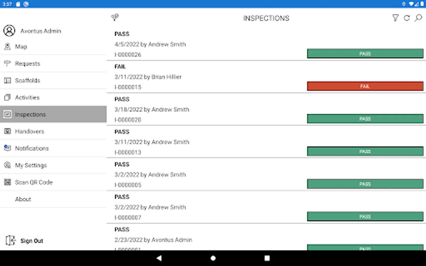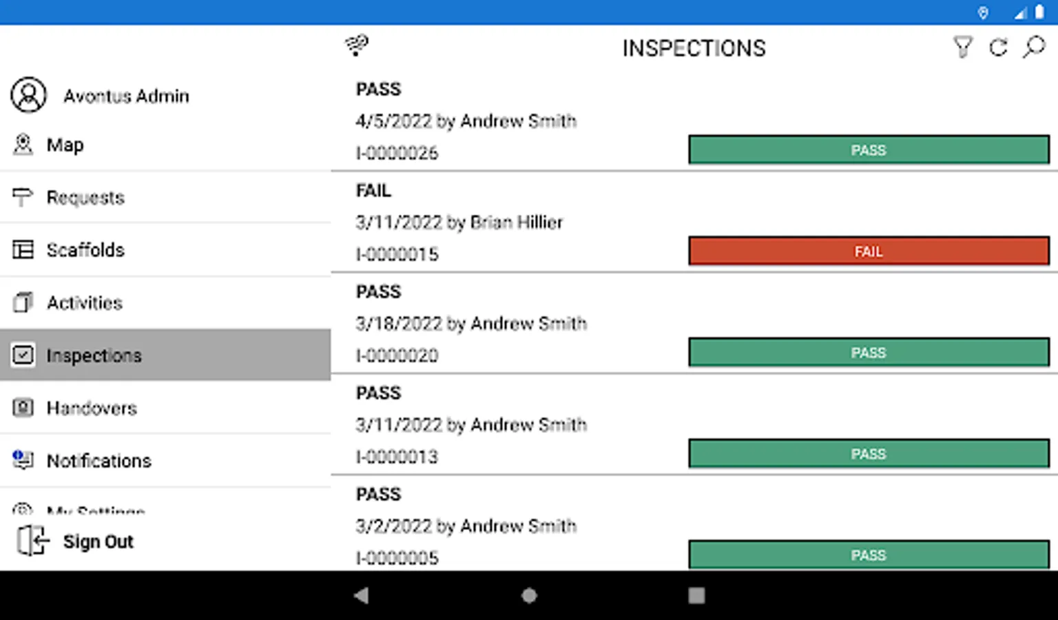 • Easily report a scaffold's handover and safety inspection outcomes. Get reminded on when the scaffolds need inspection and whether they're safe to use.