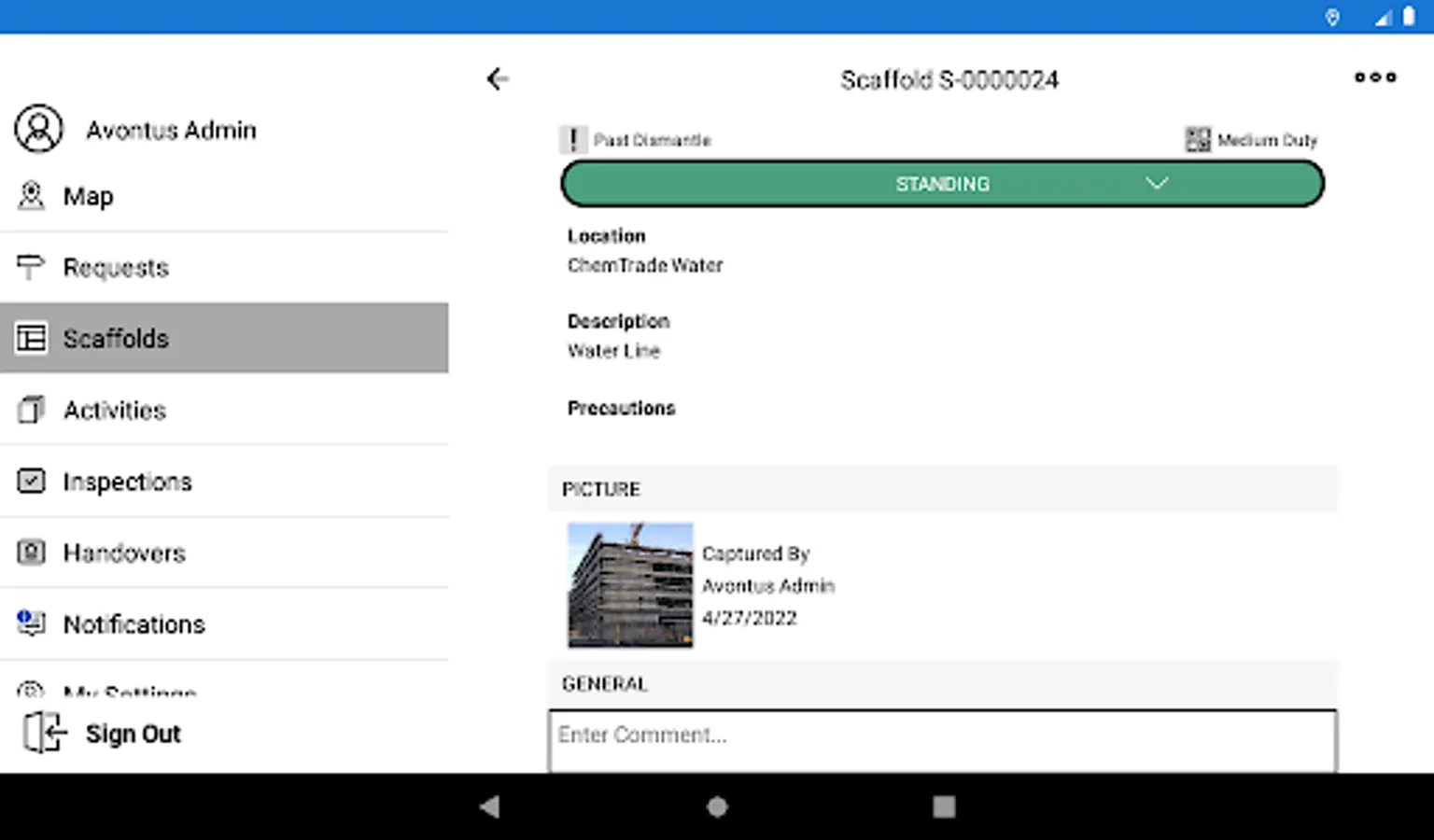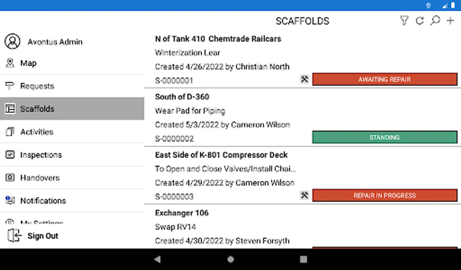 • Get total awareness of urgent tasks in your vicinity, and easy identification of where scaffolds are needed or being worked on.