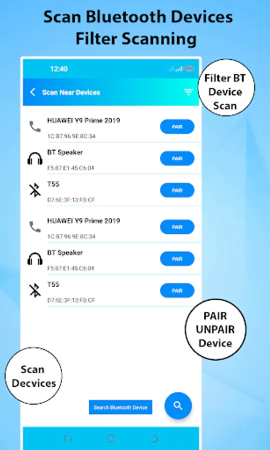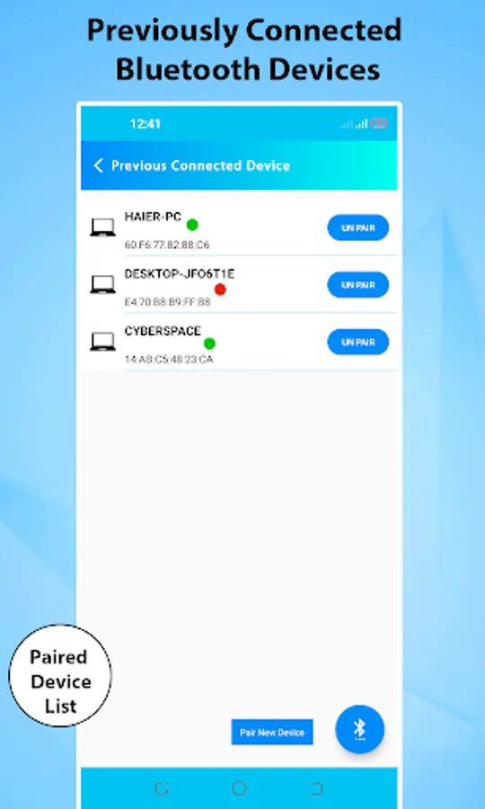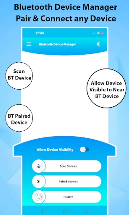 Bluetooth Auto Connect easily discovers all BT device around you and freely connect your required device to transfer file and images and video which you want. It is the best Bluetooth pairing app to scan and search the entire nearby Bluetooth device and connect for pair.