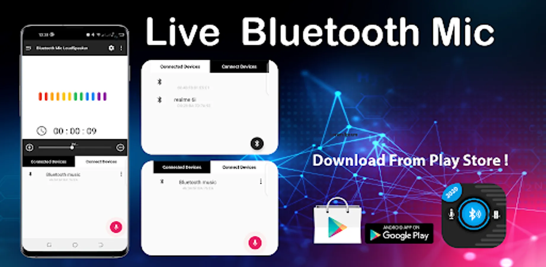 Bluetooth Microphone Live Mic connects your phone remotely with a Bluetooth loudspeaker and then you can use your mobile device as a Live Mic Speaker. The Bluetooth live mic uses your smartphone as a live microphone to any Bluetooth speaker for announcement purposes with the help of Bluetooth connectivity. The app sends voice/audio to any Bluetooth speaker easily without any wired connectivity. Sometimes you need to do announcements loudly use this app as a megaphone to announce loudly.