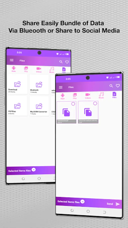 Bluetooth Sender allows you to share a bundle of data, also send Bucket which contains all selected data. with the help of sending bucket, you can easily set the items to share or transfer with other devices. The Sending Buckets can be easily accessed through the selected items button in the app.