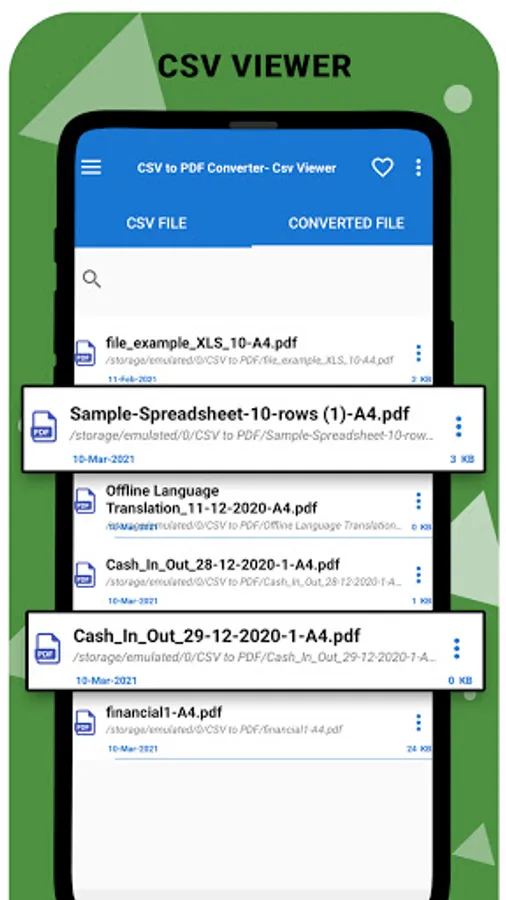 csv to pdf converter for android converts the CSV file to pdf format and read the pdf file through this application as a pdf reader. It not only converts your CSV file to pdf but also you can use this application as a CSV viewer and CSV reader for android. Simply select a file with a CSV extension and start reading and viewing it as a CSV file. with these nice tools, you can easily convert CSV to pdf.