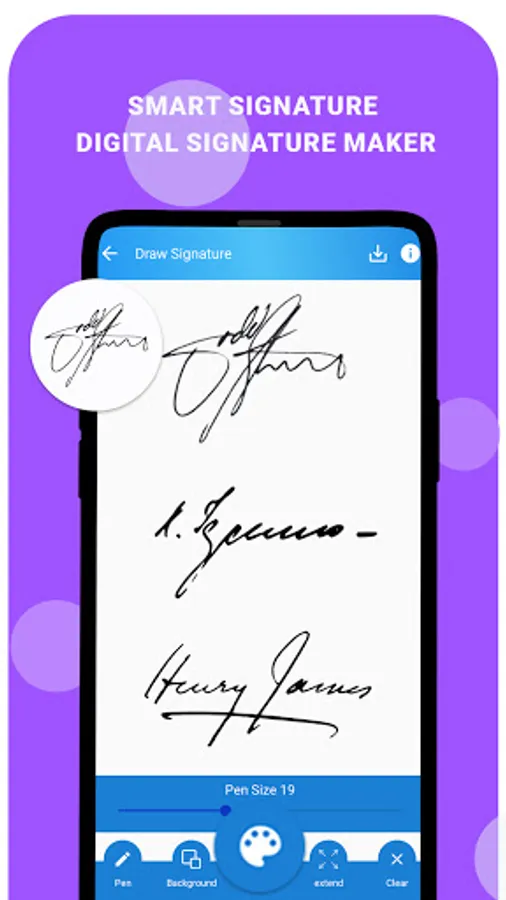 So without any time-wasting draw signatures and post them in a suitable placement. Suggest us suitable features for digital signature and signature maker our team will take immediate action to fill the user requirement and we will bring more features in the next update. Keep using our signature maker app. Thanks for using our product.