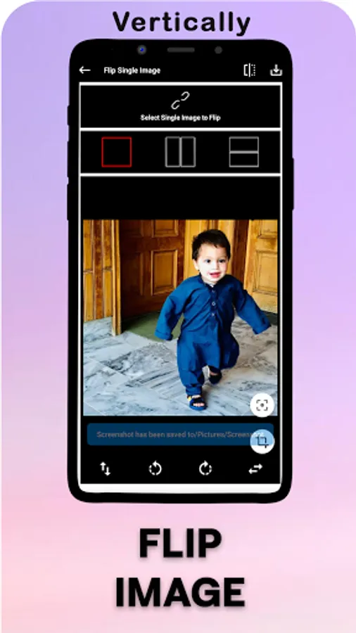 Flip Image Editor doing vertically flip and horizontally flip. This android tool flips single image and multiple images with a single click and saves them in your phone memory. you can flip a single image or also flip multiple images with these free flip image tools.