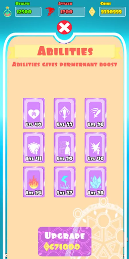 - Upgrade Permanent Abilities to increase your stats