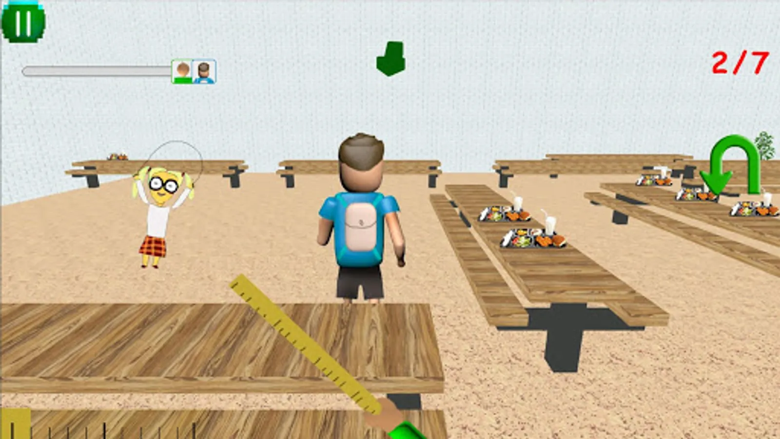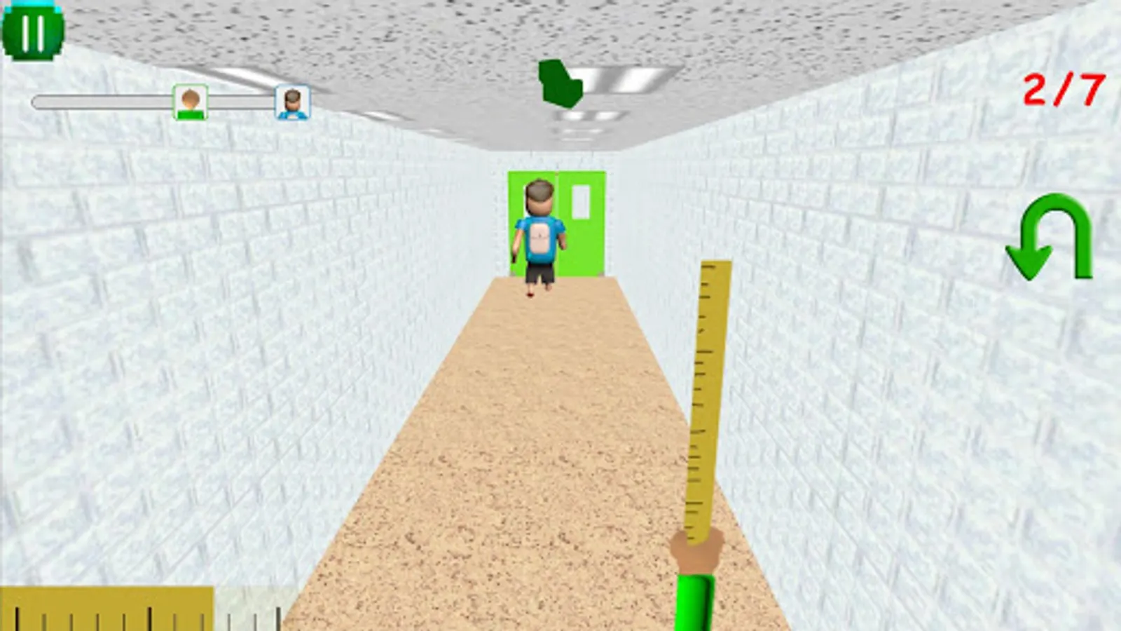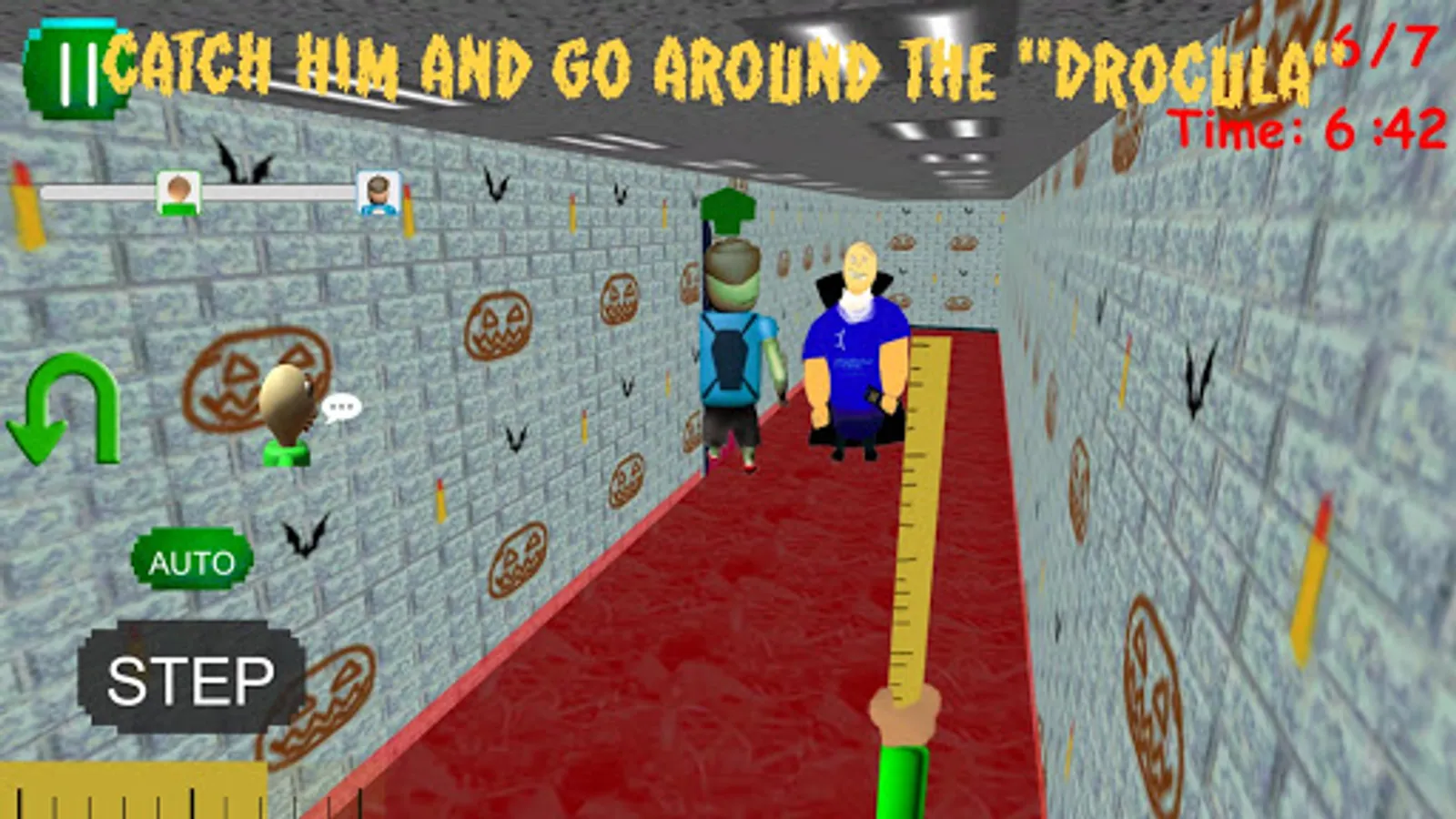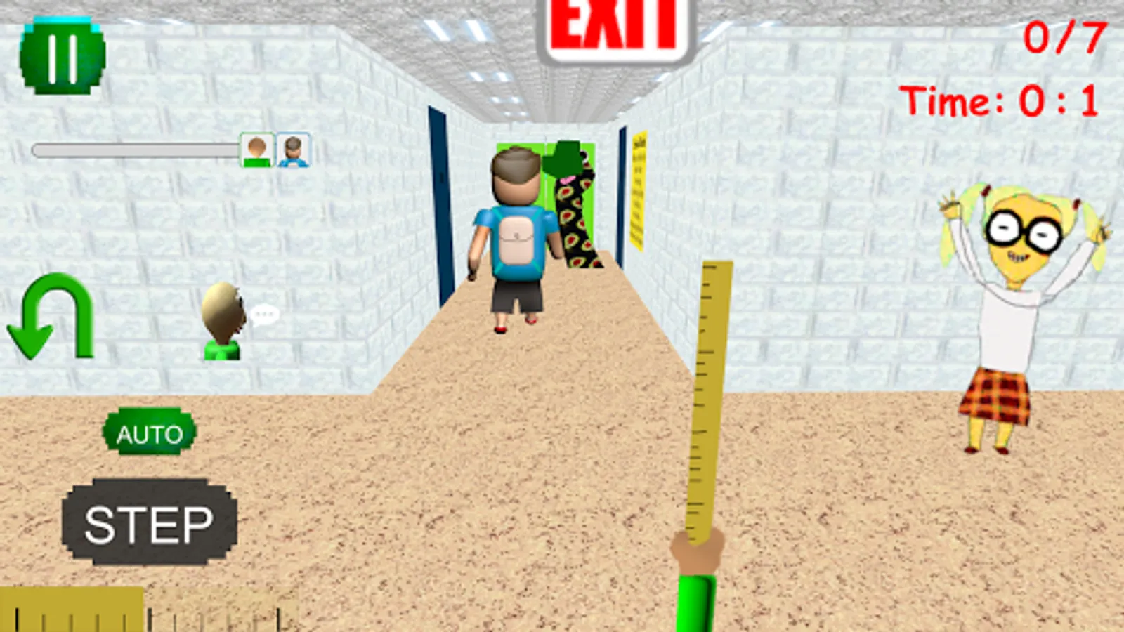 Play as a strict and angry teacher. Your task is to catch up with a student who incorrectly solves examples and runs around the school, violates the rules of the school. After he solves them, he will try to escape from school. Do not let him do this.