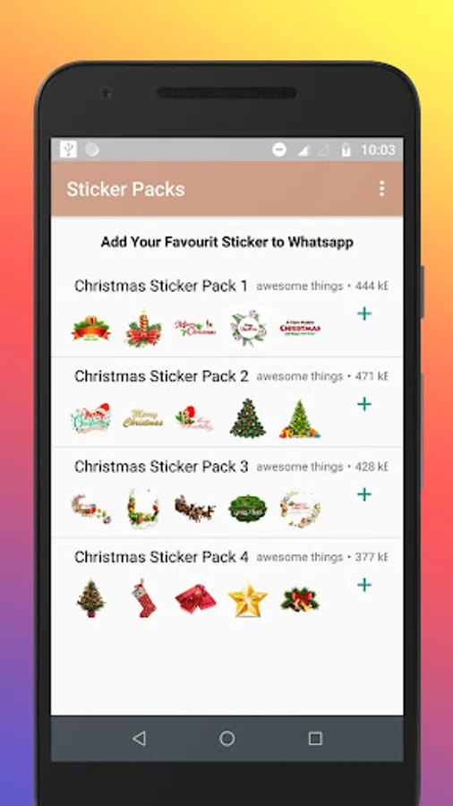 Easy to install sticker packs. Tap on add ‘+’ button from list of beautiful Christmas sticker packs. Go to WhatsApp and start sending stickers in chats.