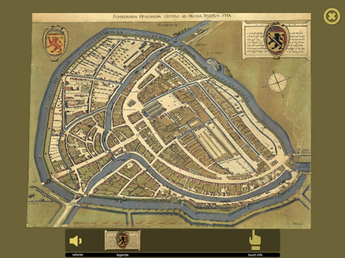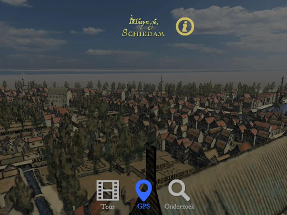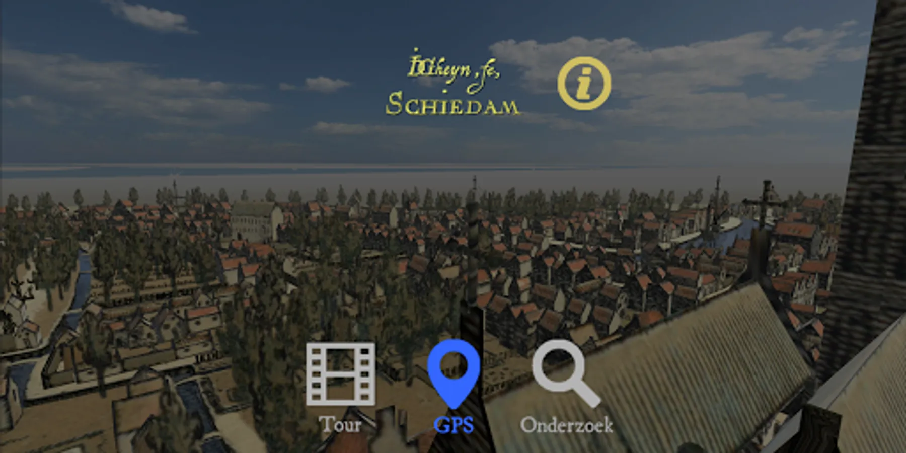 The App "Schiedam 1598" is a 3D representation of the map made by the graphic artist Jacques de Gheyn in 1598 on behalf of the city council. De Gheyn not only depicted important buildings on this. He also portrayed mills and activities, looked around city gardens, the shipyards on the Lange Haven and drew ships in the harbors.