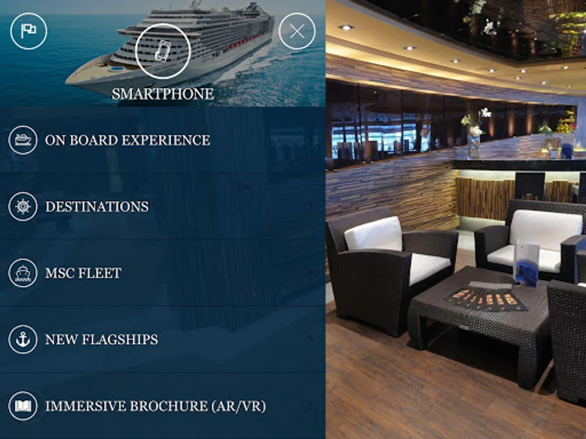 With MSC360EXPLORE the user will be able to view the MSC world through his Smartphone, Tablet and / or Cardboard, with video content and 360 ° rendering environments related to the MSC fleet, to Ship Environments such as Catering and Swimming pools, to Destinations and Excursions , etc ...