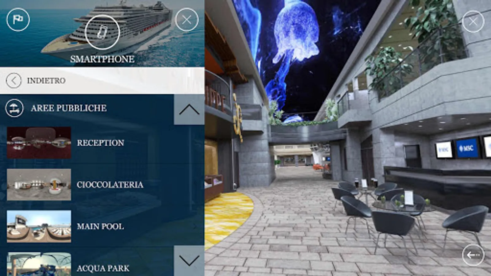 The MSC360EXPLORE app will allow the user to experience Virtual Reality (VR) and Augmented Reality (AR) in a 360 ° 3D journey.