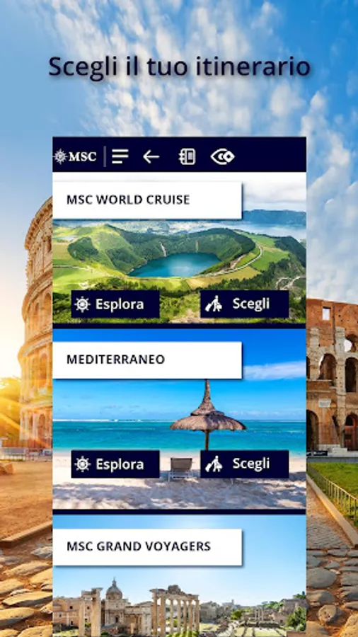 With MSC360VR the user will be able to view the MSC world through his Smartphone, Tablet and / or Cardboard, with video content and 360 ° rendering environments related to the MSC fleet, to Ship Environments such as Catering and Swimming pools, to Destinations and Excursions , etc ...