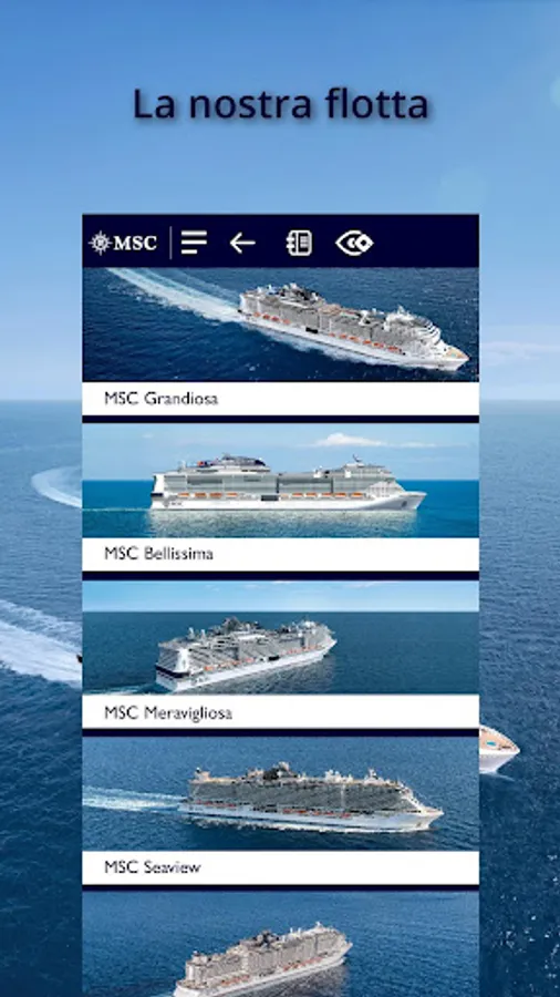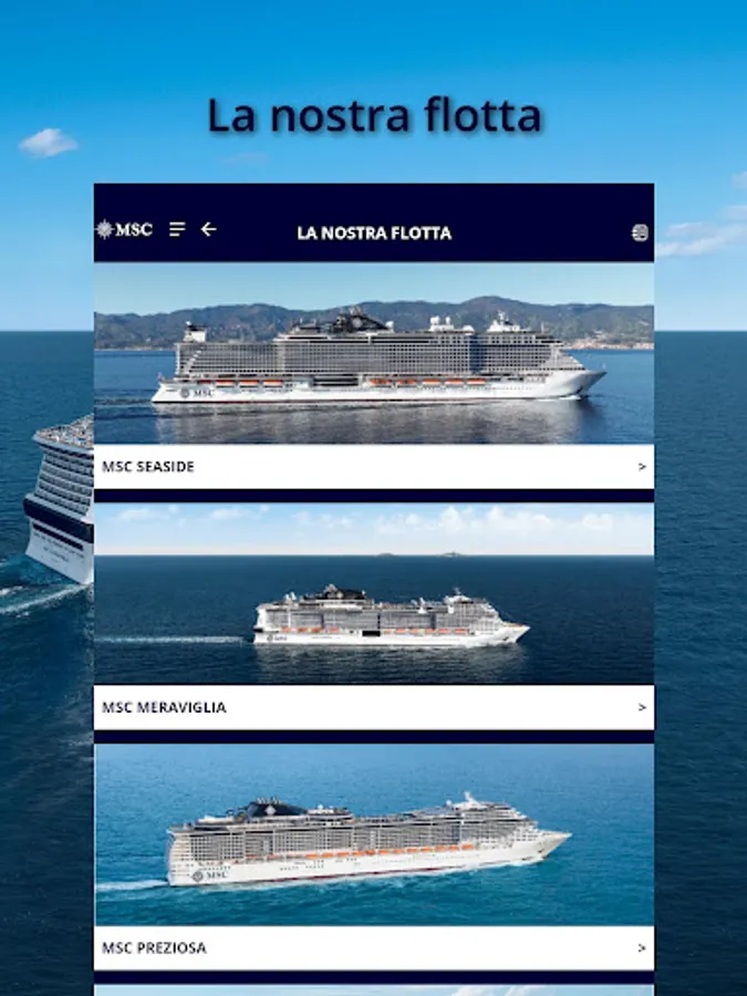 -align aboard our fleet and make a Virtual Tour of all ships, choosing the environments and viewing the ship at best;
