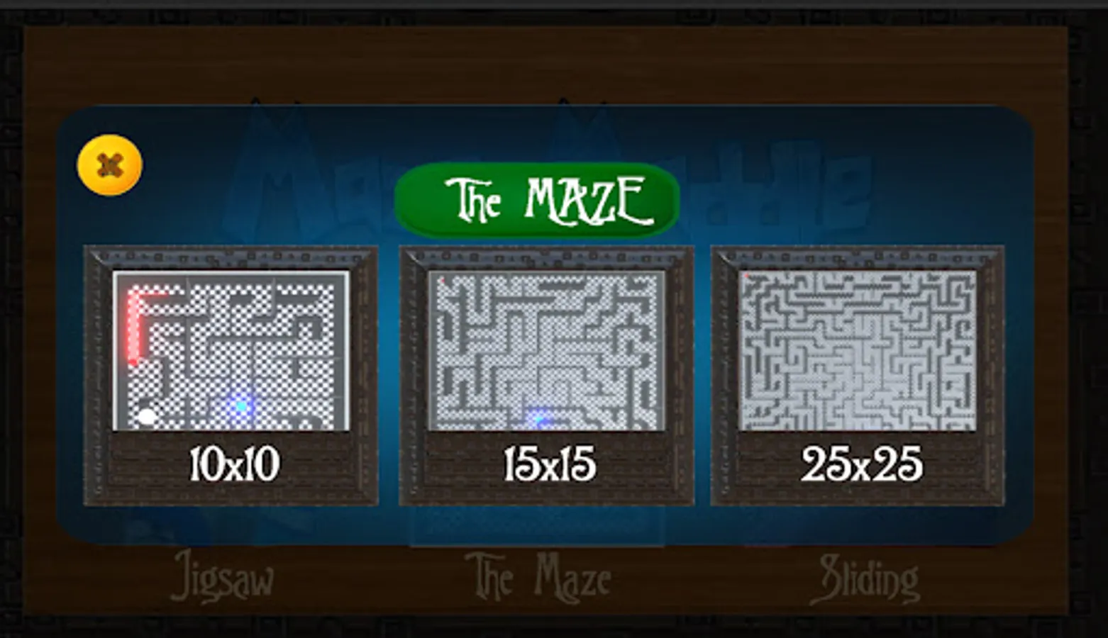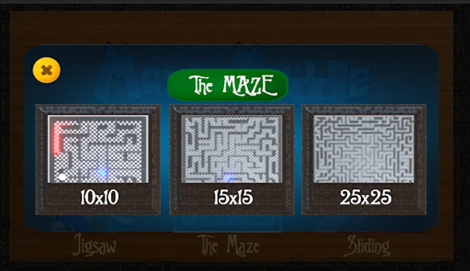 The Maze : have Three different types, 10 by 10, 15 by 15 and the 25 by 25.