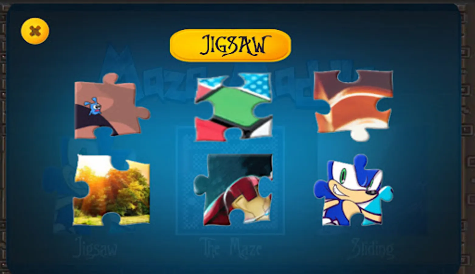Jigsaw : Six different jigsaw puzzles.