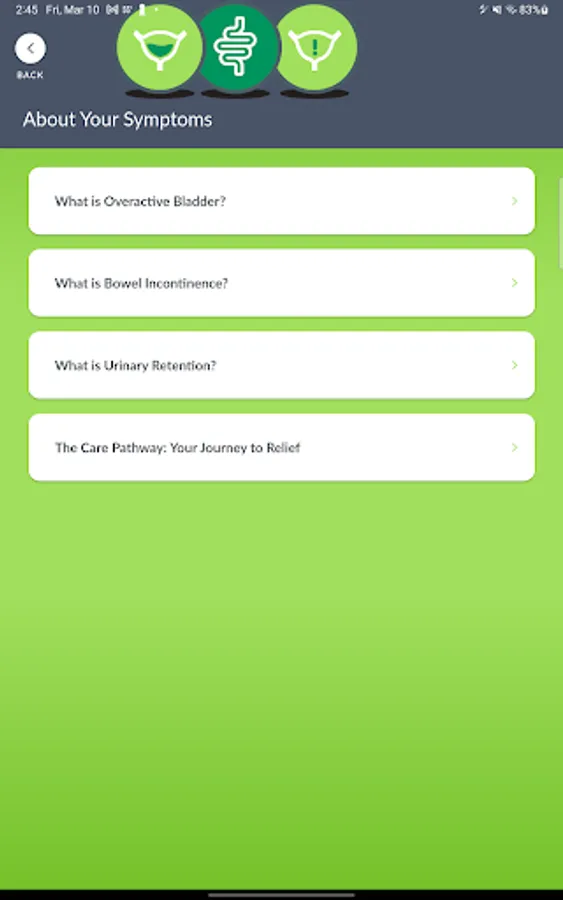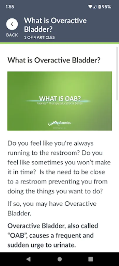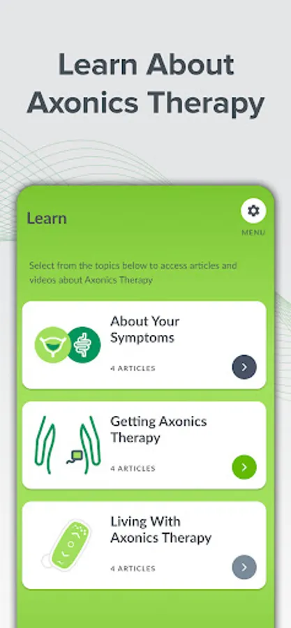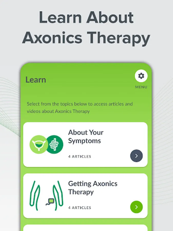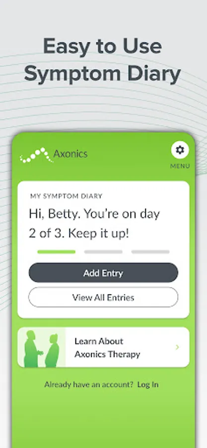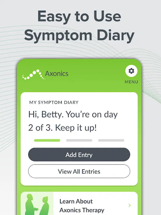 Find relief from your bladder and bowel control symptoms. With the myAxonics app, you can track your symptoms with an easy-to-use bladder and bowel diary, share your diary results with your physician, and learn about bladder and bowel treatment options like Axonics Therapy.