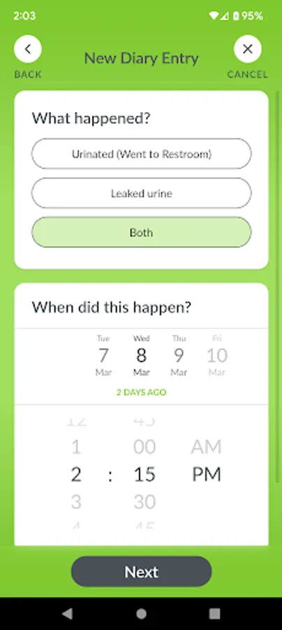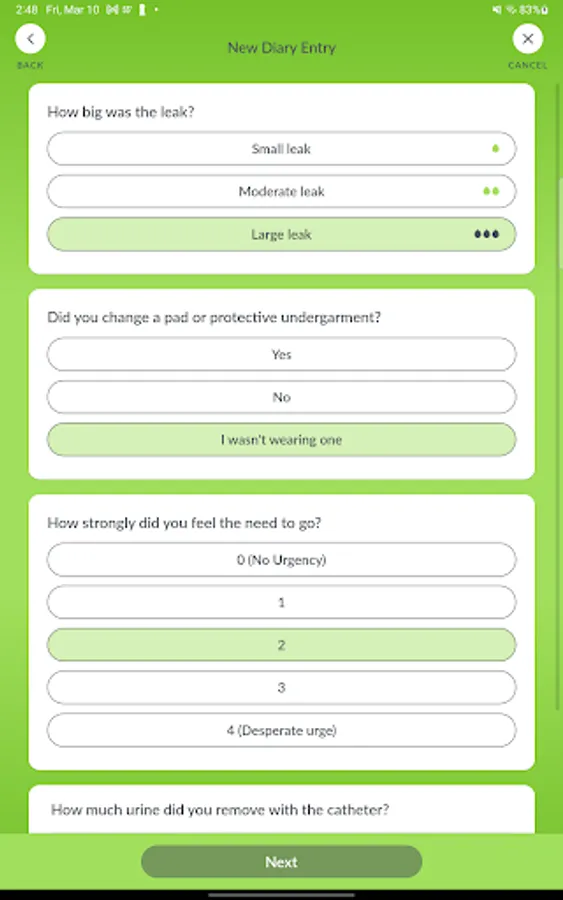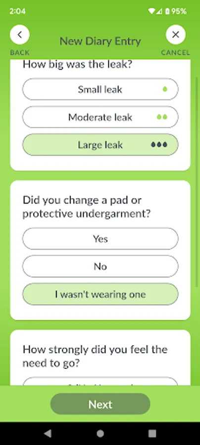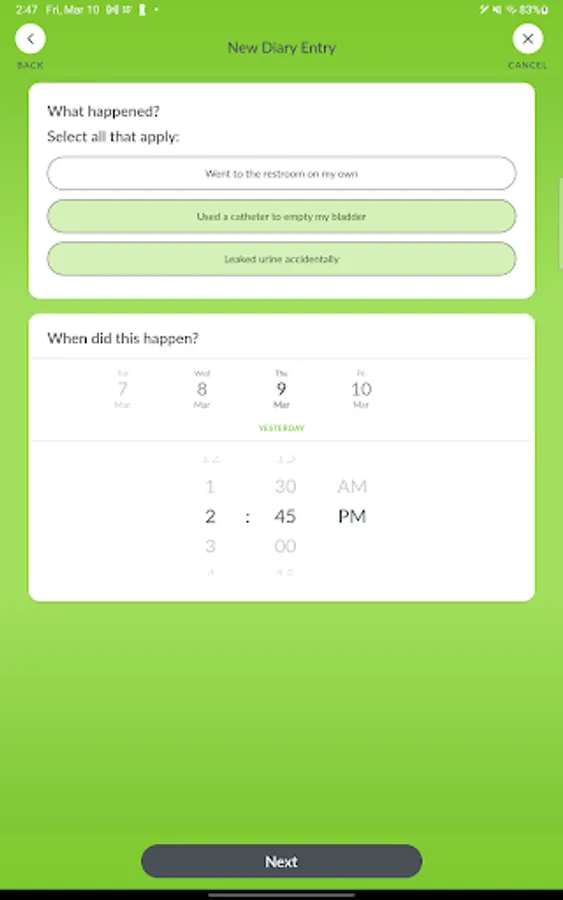 - Log your bladder and bowel events, such as trips to the bathroom, accidents, and pad changes using an intuitive and easy-to-use diary.