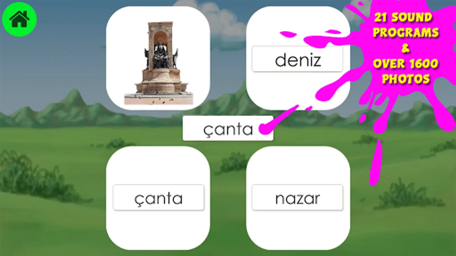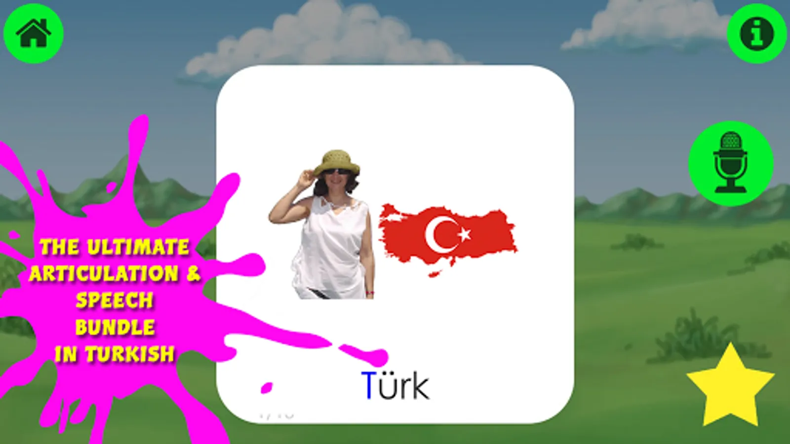 It is a complete articulation program offering at the word and phrase level 21 sounds in the Turkish. Seven engaging activities are presented via over 1600 real photographs isolated on a white background that are easy to identify. The whole program is based on standard Istanbul Turkish.
