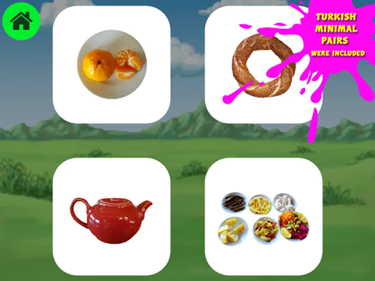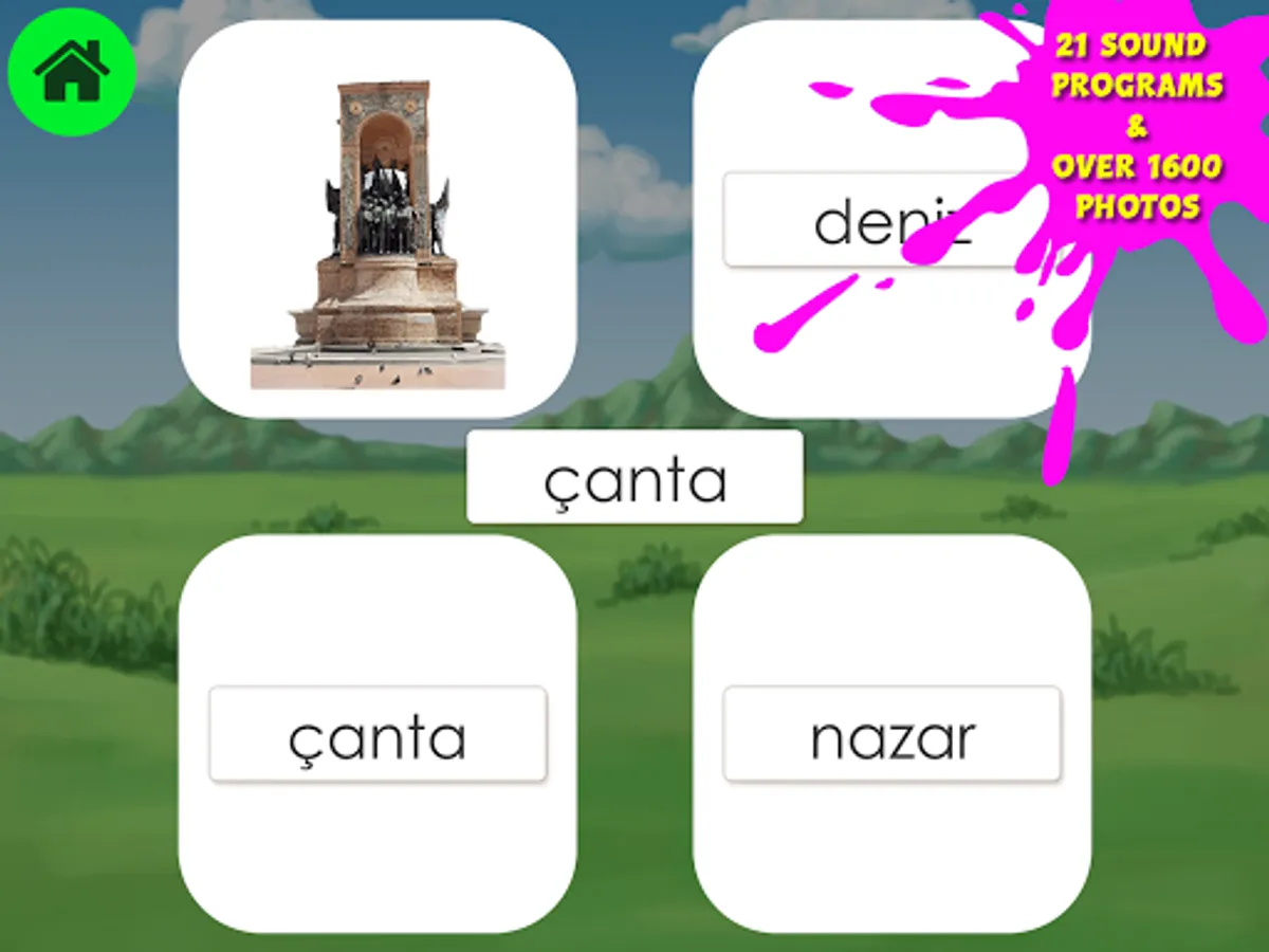 It is a complete articulation program offering at the word and phrase level 21 sounds in the Turkish. Seven engaging activities are presented via over 1600 real photographs isolated on a white background that are easy to identify. The whole program is based on standard Istanbul Turkish.