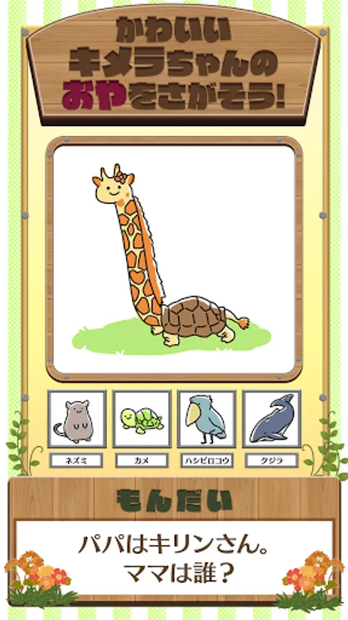 This is a mini quiz game where you can guess the dad and mom of the child by looking at the cute chimera-chan's illustrations!