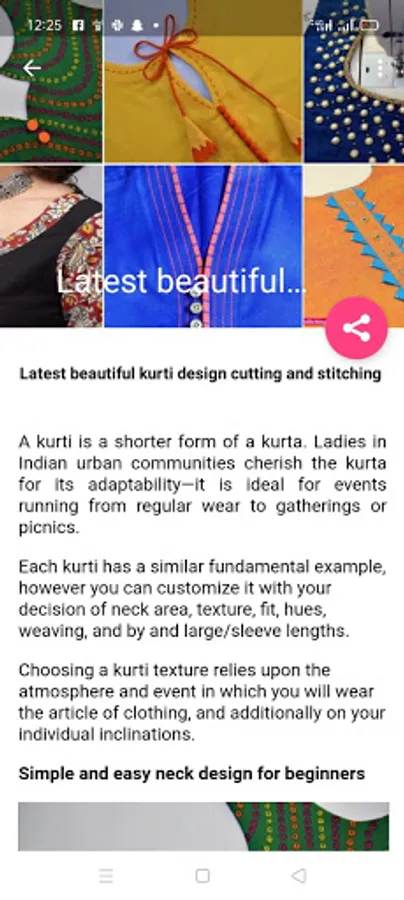 My app fully knowledgeable for stitching .provide Ladies Trouser, kurta, neck design .This app guide through pi and video. Its a interesting app