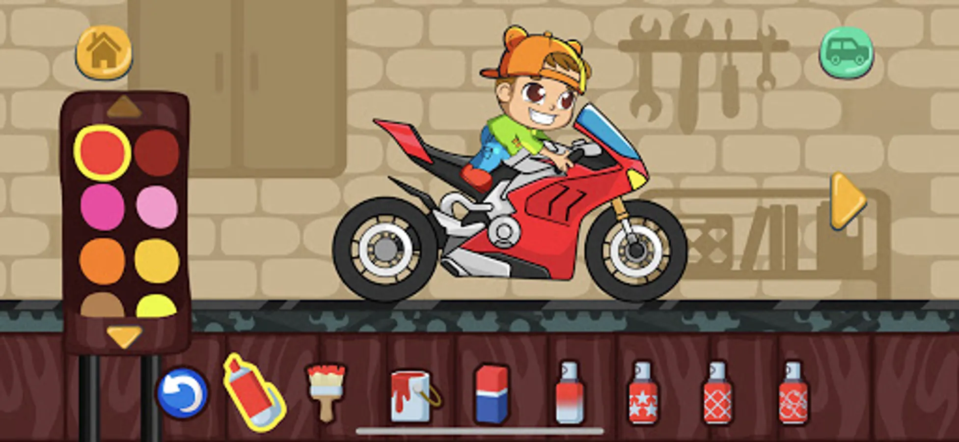 - Customization of each car - body painting in different colors and patterns, wheel replacement, a huge collection of stickers and body kits. Your child can create a truly unique car.