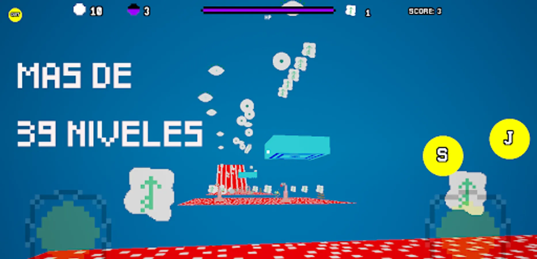 It is a platform and FPS genre game. 40 levels, 4 worlds with 10 levels each and more than 20 hours of fun.