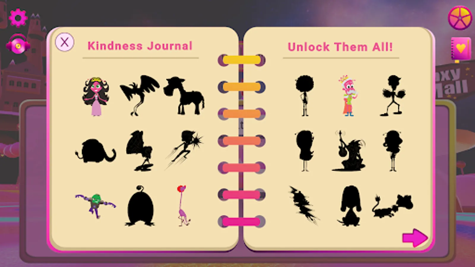 Planet Pink has the player answer questions based around the lore of the Planet Pink stories. As the player makes the correct answer, they will have the opportunity to rescue and unlock new friends from the Planet Pink stories, learning more about these adorable and fascinating characters in the Kindness Journal.