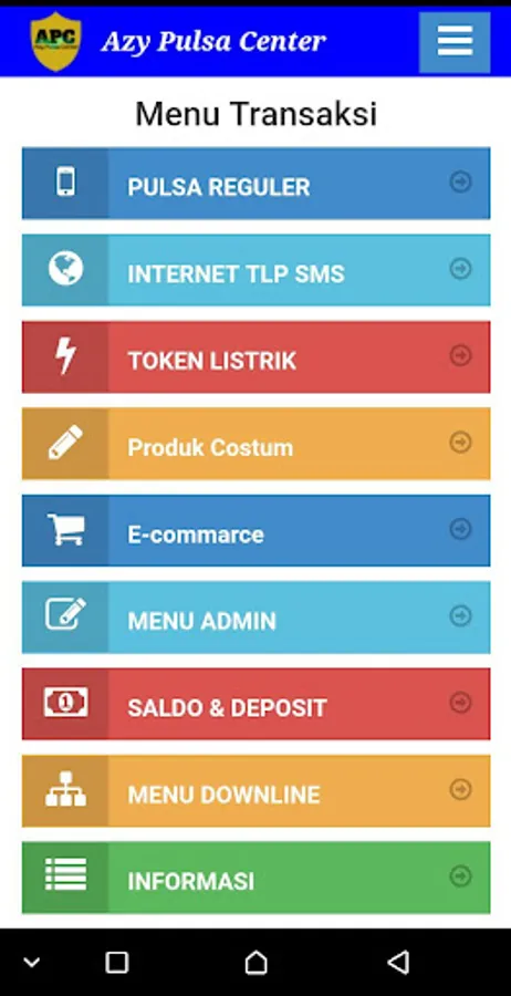 AZY PULSA CENTER android application is a free mobile application for loyal members of AZY PULSA CENTER wherever located. This application makes it easy for you to perform various transactions such as topping up pulses, purchasing electricity tokens, paying postpaid bills, purchasing game vouchers, etc.
