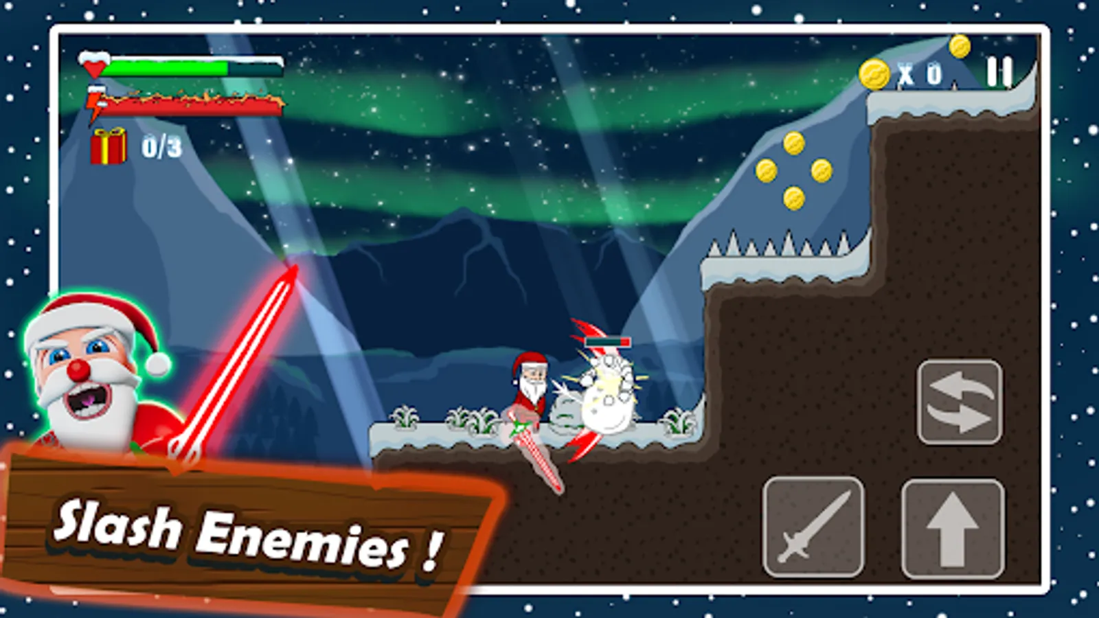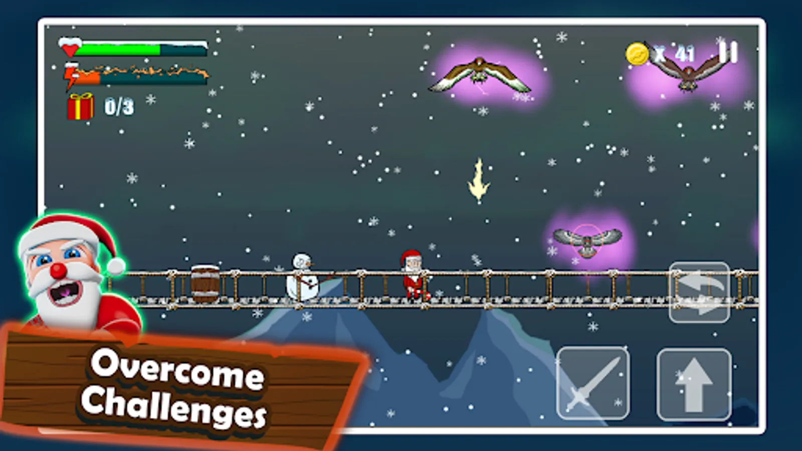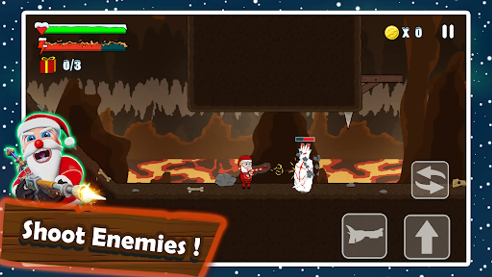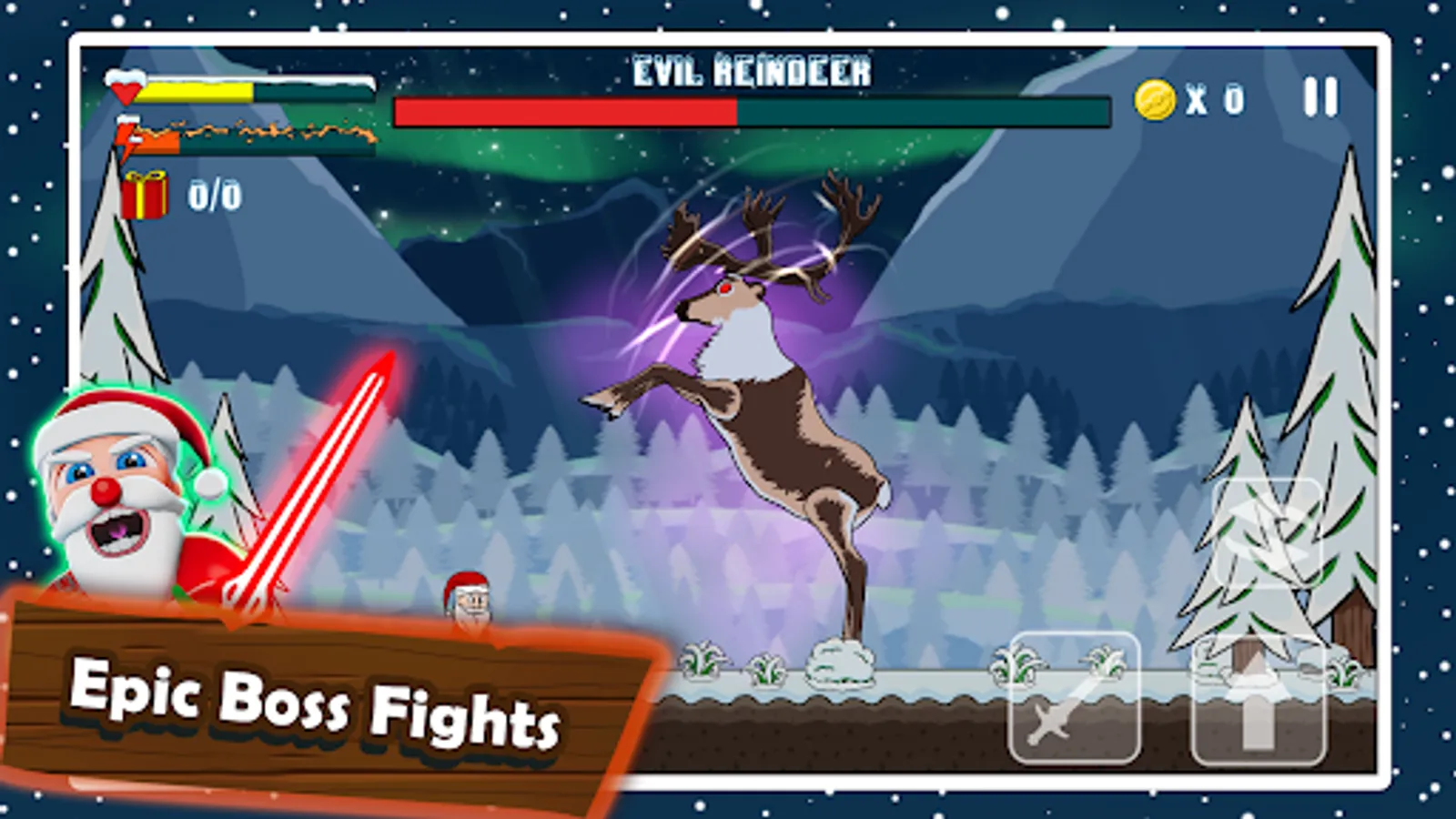 In his journey, our hero faces many odds. Help him fight, slash and shoot evil snowman, cave monsters and free the possessed animals like penguin, eagle, owl, bats and the reindeer from Krampus evil powers. Not only normal enemies awaits Santa in his adventure, but also epic boss fights and many other challenges that lay ahead.