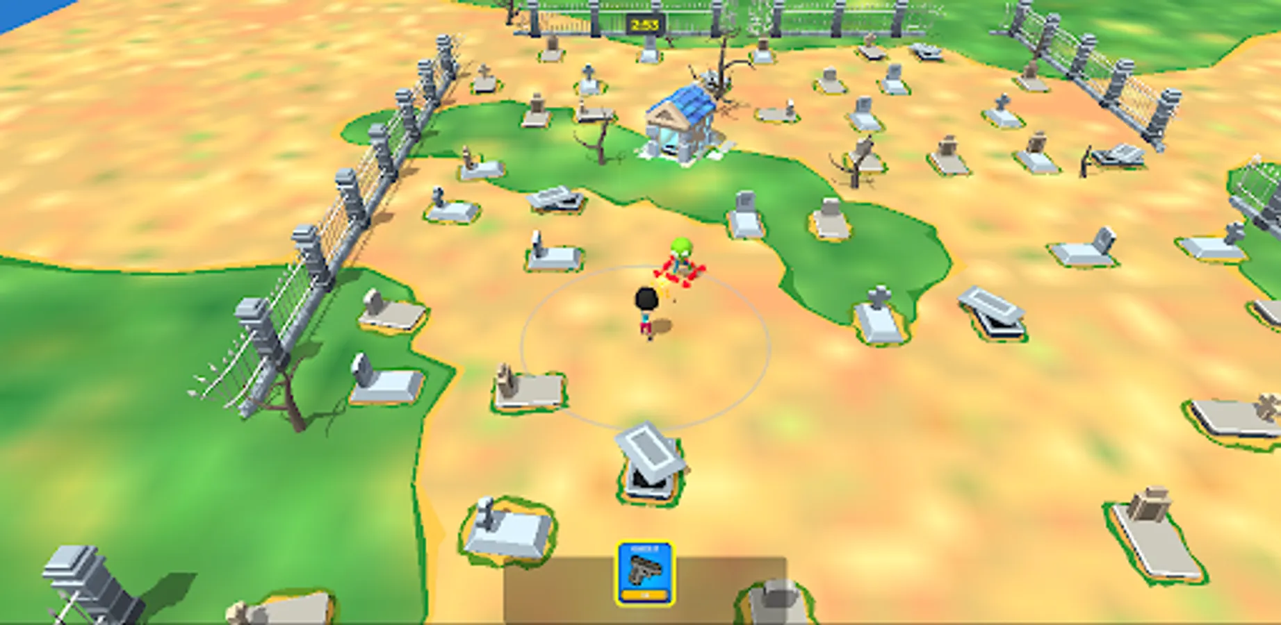 You are on a track surrounded by zombies, you must eliminate them all to pass the level