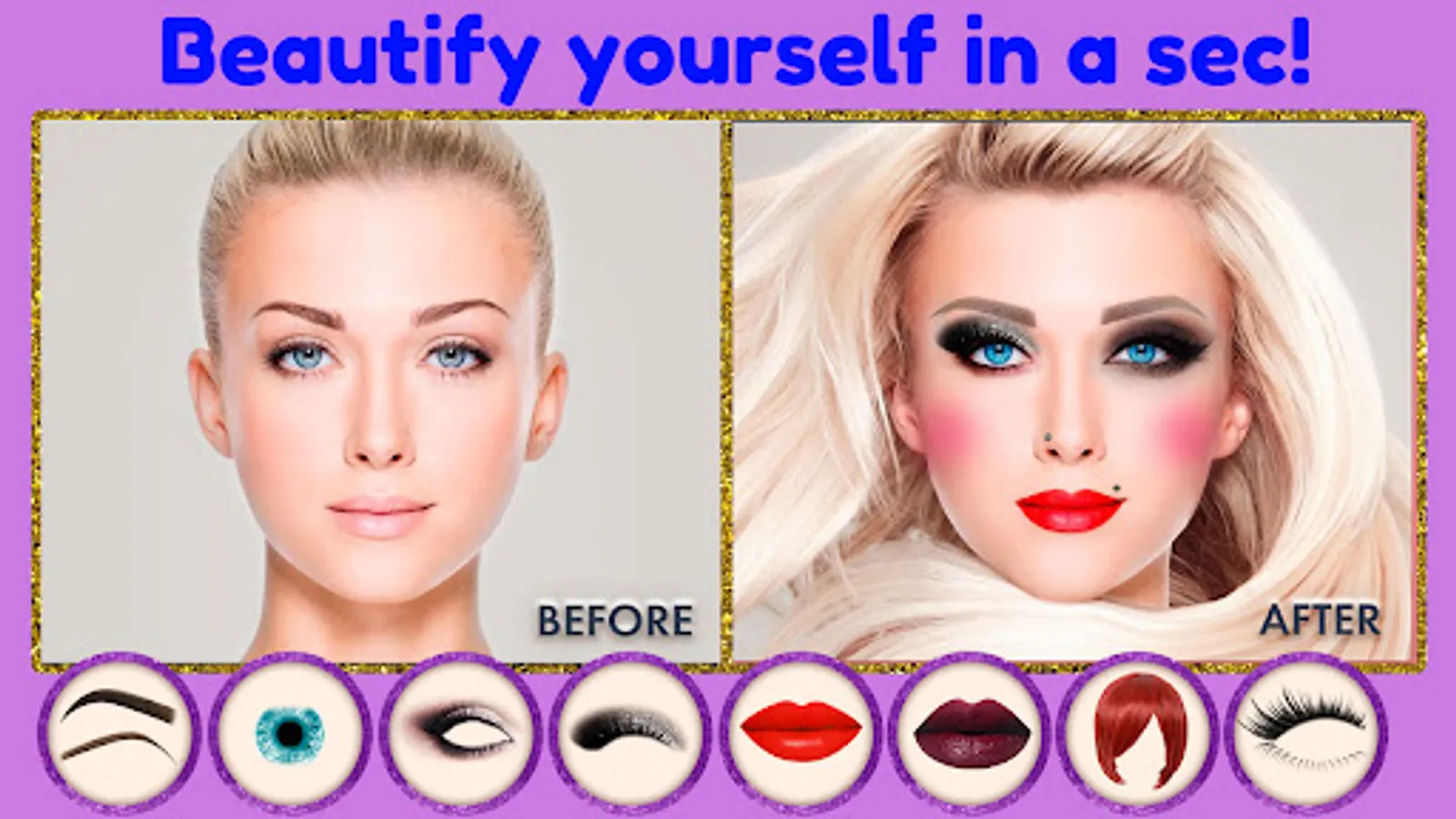 Do you want to have different professional makeup every day? No problem! Take a selfie or select a photo from your picture gallery and go on! Use our beauty app and enjoy!