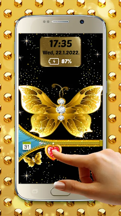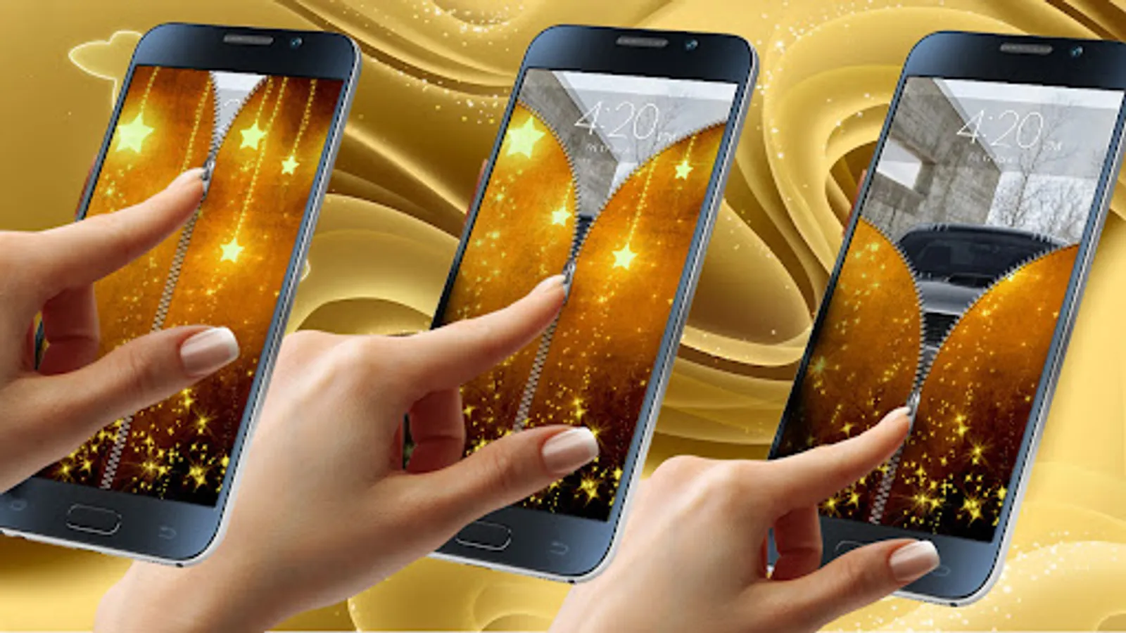 Forget about pin and password lock screen apps. Why would you memorize numbers that can easily slip out of your mind? You can now set an easier form of protection but the one equally reliable and efficient! Gold Glitter Zipper Lock Screen will let you discover a pile of cool lock screens and gold wallpaper backgrounds, so try it out and decorate your phone with amazing sparkling pictures!