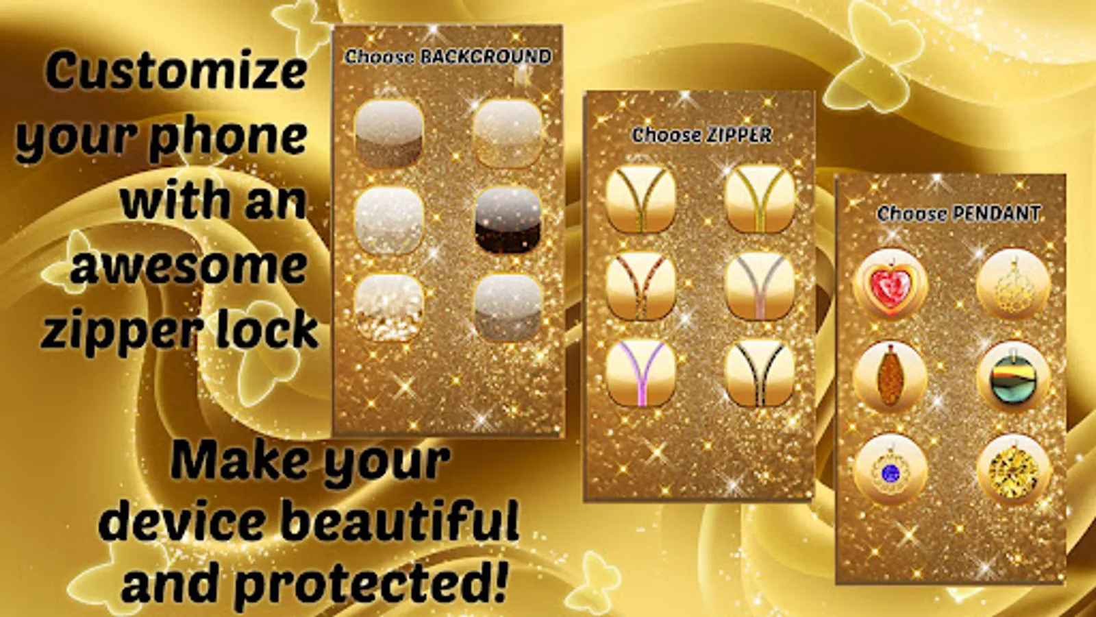 💎 Wrap up your phone in luxury and elegance! "Gold Glitter Zipper Lock Screen" is all you need in order to protect your phone and make it stylish and pretty! This "zipper pattern lock screen" presents you with an amazing collection of "gold glitter wallpapers" and "diamond wallpapers" that you can set as your "pattern lock screen" and secure your phone from anyone who dares to try to take a peek into your personal data. Your "glitter zipper lock screen" will give a new look to your phone and make it sparkle and shine with opulence!