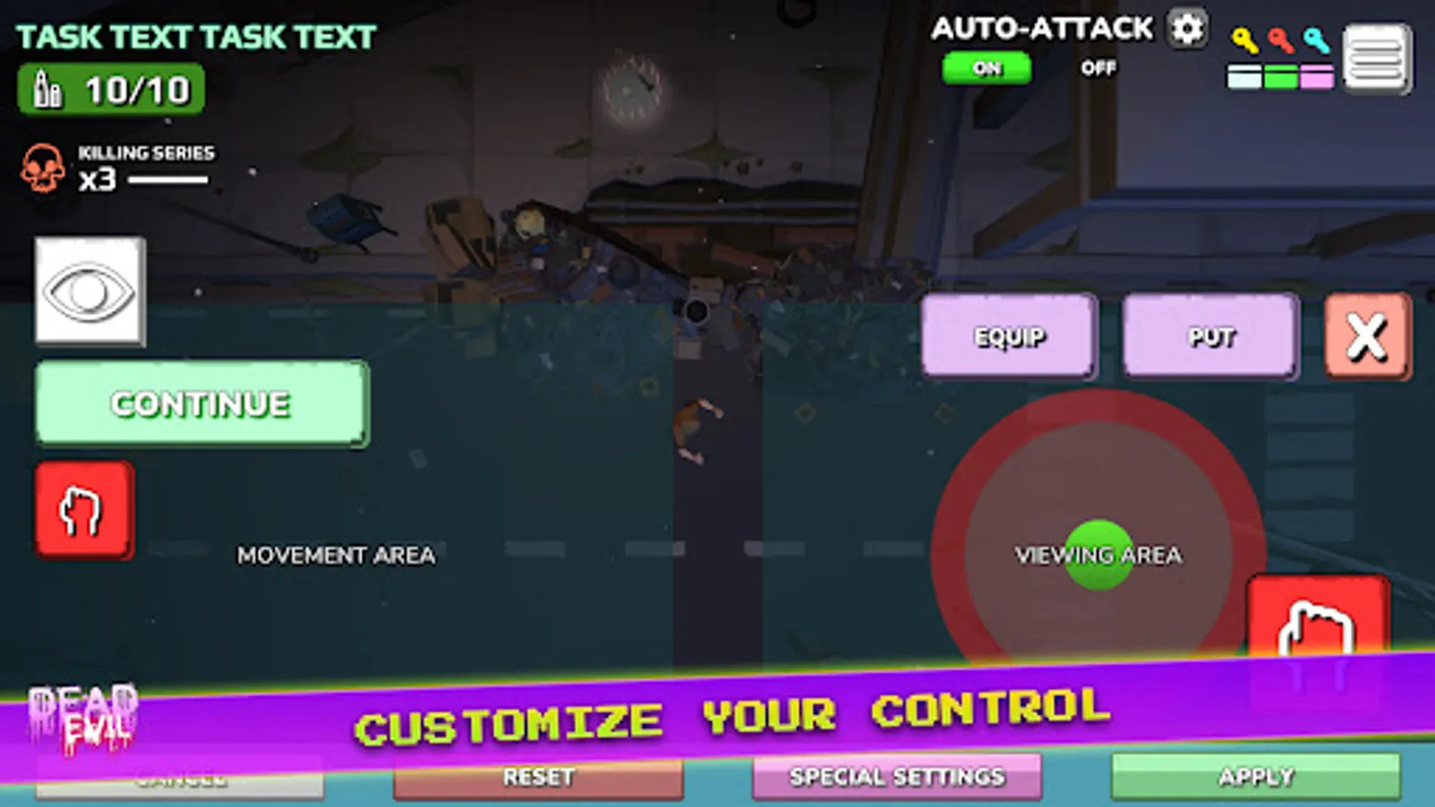 To move in the Zombie Apocalypse game, you need to slide your finger in the lower left part of the screen. If an auto-attack mode is activated, the character will damage enemies in the special zone himself. To choose an opponent, just click on him, and the character will focus on the target. The hero will chase and attack the chosen enemy automatically. After each hit or shot at zombies, your weapon durability decreases. The apocalypse survival game offline provides special scenario levels with 6 locations such as botanical garden, labyrinth, dead city and forest diversion and others. Players can choose a location based on their preferences. Besides, there is a survival bunker mode – here, you need to confront zombies for a while and collect stars to increase your rating. To escape from the walking dead, the character has to climb into a shelter underground offline.