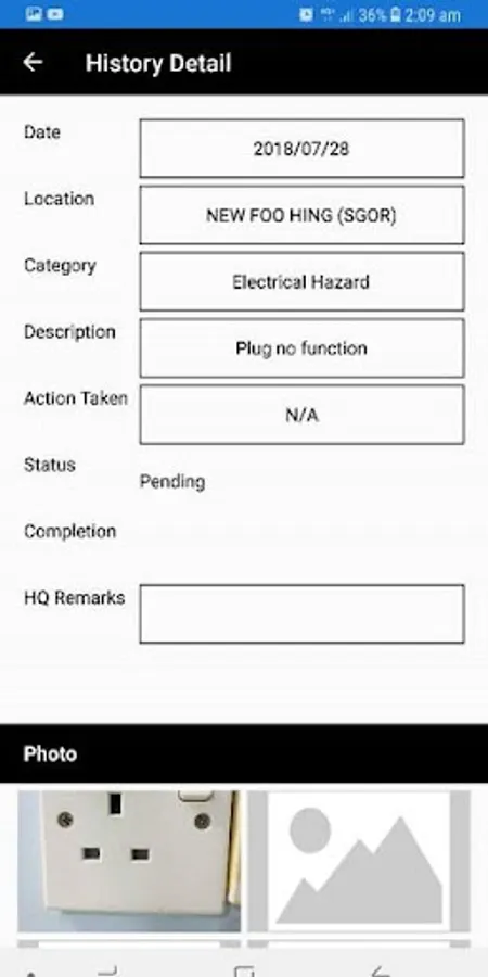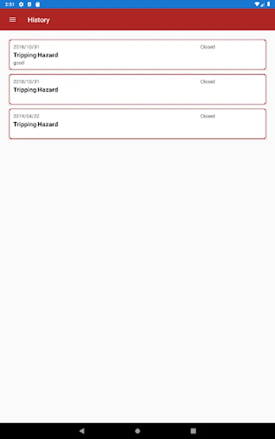 This application is allow user for near miss reporting on unsafe act or unsafe condition at workplace. It also provide the user the trace the history of the progression previous reporting.