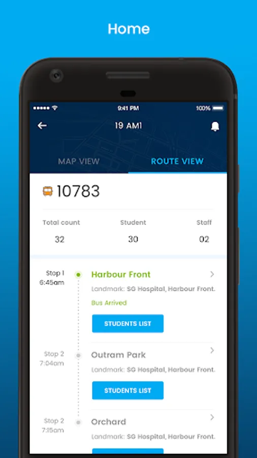 An app with content-rich offering a wide range of information for managing the transport very efficiently – empowering Transport Manager, Transport Executive, Bus Aunty and Parents to make informed decisions and plan the routes and track for better service offering, with these features: