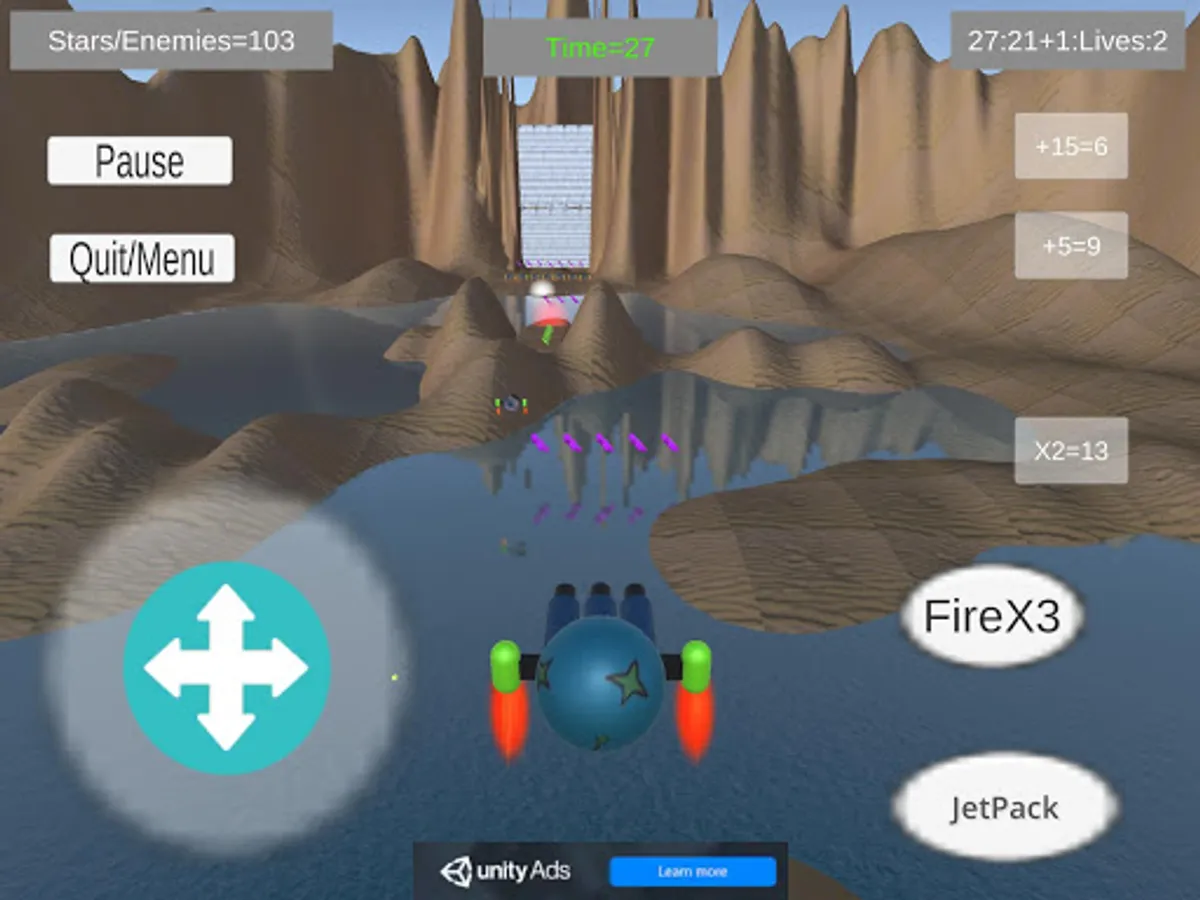 In the arcade level you must collect and shoot every star and enemy, but you better hurry before your time runs out. Marble Jetpack arcade levels also have checkpoints to save your current spot in the level and add time. The checkpoints can be reused as well. In level 2 of the arcade levels power ups are added to help aide in finishing a level.