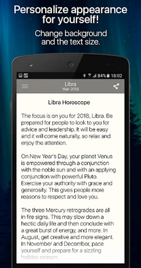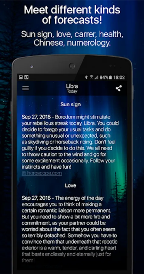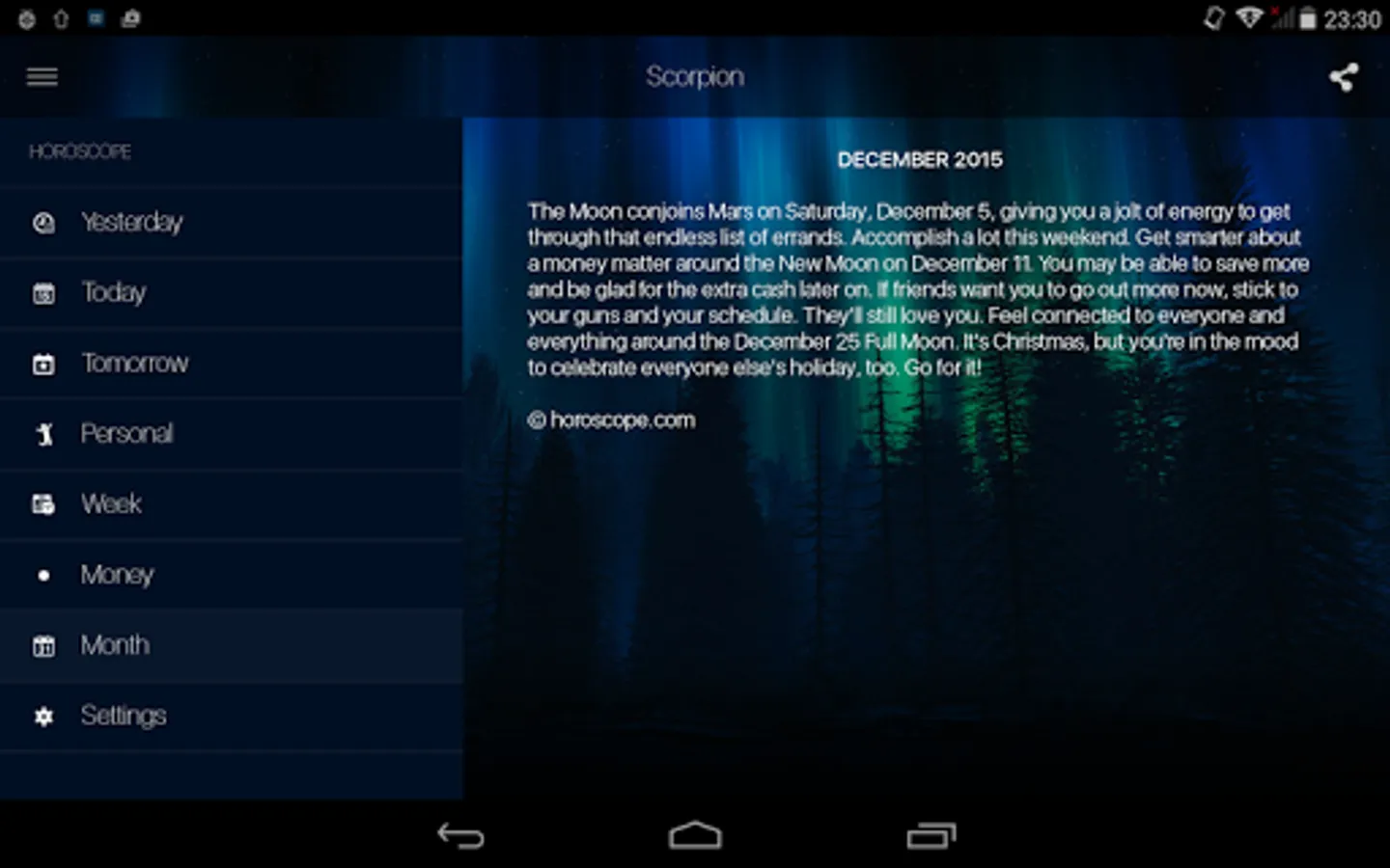 Additionally: This app is intended to provide to user comfortable reading horoscope for everyday. I hope this application will gift good mood for you in coming day.