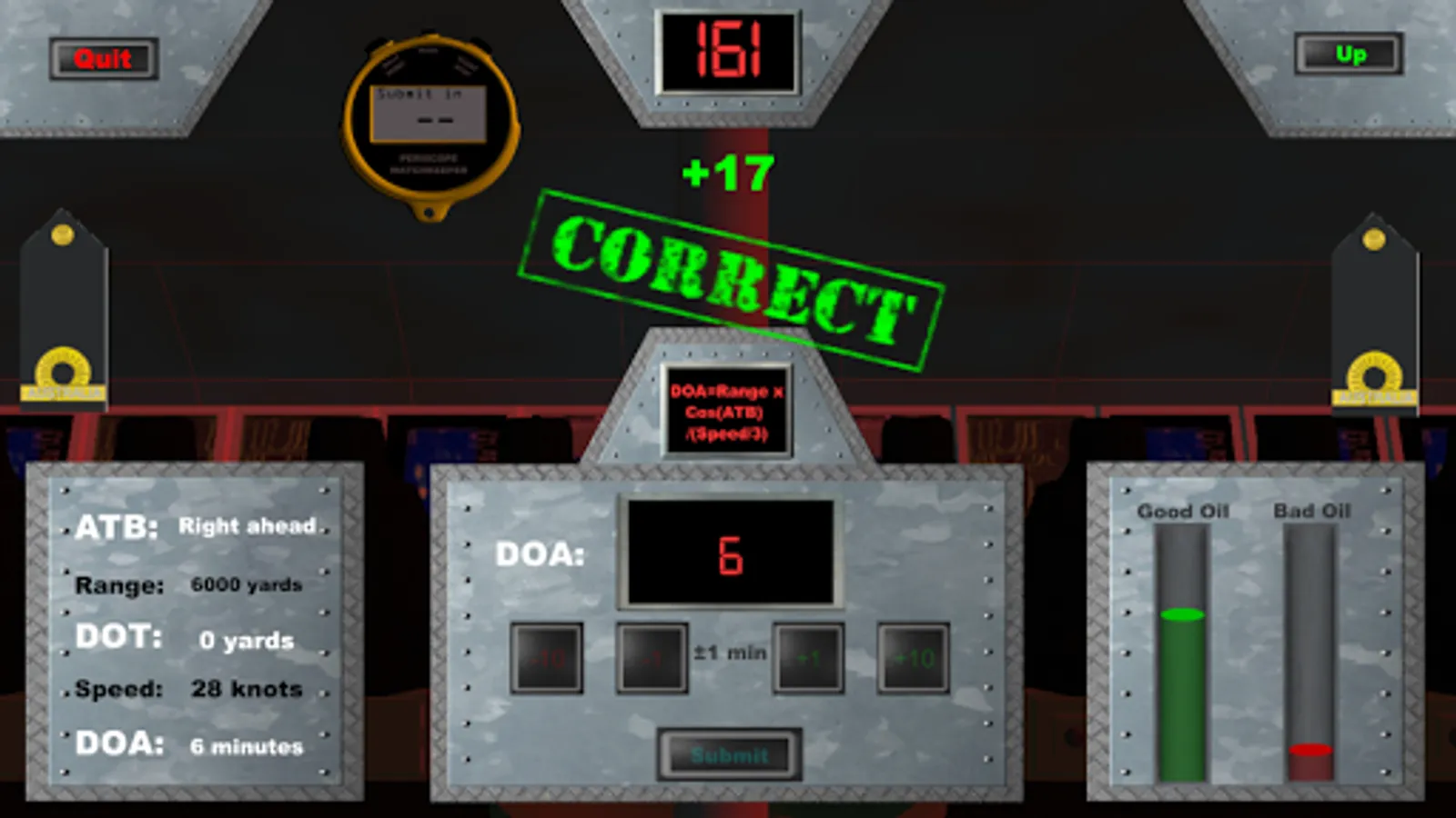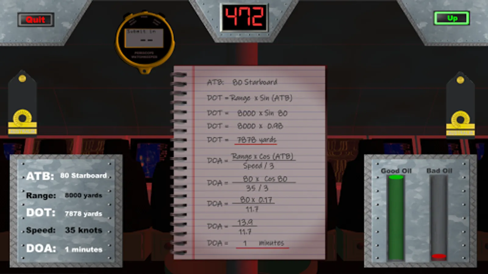 Whether you are a current submarine periscope operator, bridge staff or intend to join the silent service in the future, this game provides valuable training in the essential skill of determining another vessel's aspect (ATB) as well as calculating the Duration of Attack and Distance Off Track. Features of this demo version include: